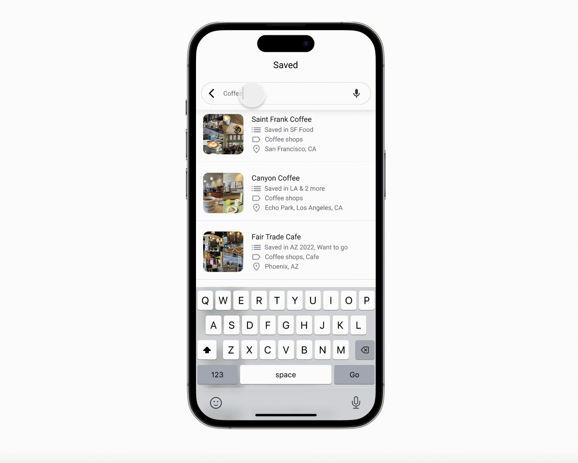 I designed features that make saved places easier to find, focusing on how people naturally recall information. Instead of forcing users to remember exact names or addresses, the system layers in contextual and AI-powered search to match human memory.