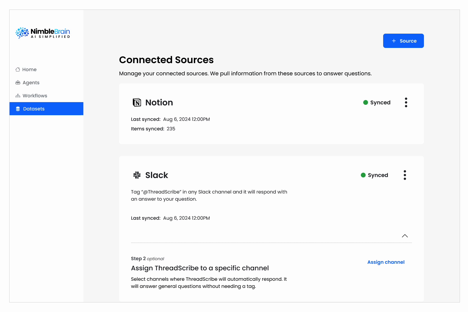 Built for medium-sized business owners, NimbleBrain connects tools like Google Drive, Slack, and Airtable into one place and makes them searchable with AI agents.